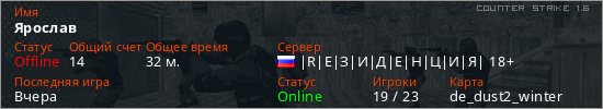 Последний раз был в сети Вчера Игрок с таким ником замечен на 28 серверах
