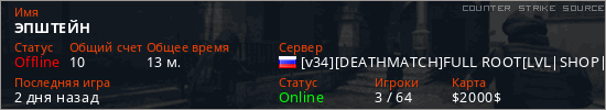 Играет на Counter Strike Source сервере. Страна: РоссияПервый раз замечен 00:59 11.02.2026
