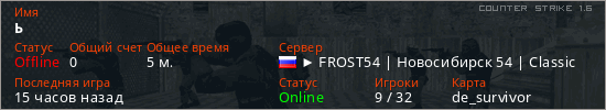 Последний раз был в сети 13 часов назад Игрок с таким ником замечен на 13 серверах