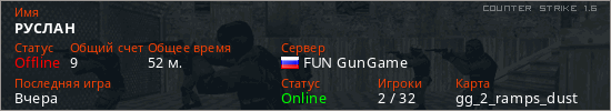 Последний раз был в сети Вчера Игрок с таким ником замечен на 14 серверах