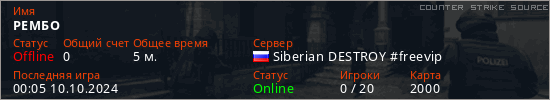 Играет на Counter Strike Source сервере. Страна: РоссияПервый раз замечен 23:57 09.10.2024