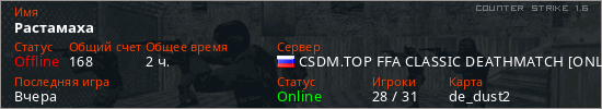 Последний раз был в сети Вчера Игрок с таким ником замечен на 4 серверах