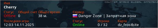 Играет на Counter Strike Global Offensive сервере. Страна: РоссияПервый раз замечен 09:58 08.11.2025