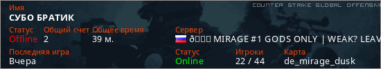 Играет на Counter Strike Global Offensive сервере. Страна: РоссияПервый раз замечен 22:45 02.11.2025