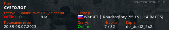 Играет на Counter Strike 1.6 сервере. Страна: РоссияПервый раз замечен 22:45 30.06.2023