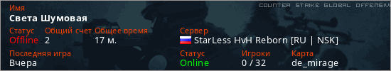 Играет на Counter Strike Global Offensive сервере. Страна: РоссияПервый раз замечен 09:37 14.01.2026