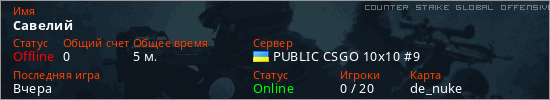 Играет на Counter Strike Global Offensive сервере. Страна: УкраинаПервый раз замечен 23:25 06.03.2026