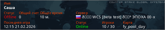 Играет на Counter Strike Global Offensive сервере. Страна: РоссияПервый раз замечен 03:19 21.02.2026