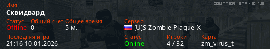 Играет на Counter Strike 1.6 сервере. Страна: РоссияПервый раз замечен 21:12 10.01.2026