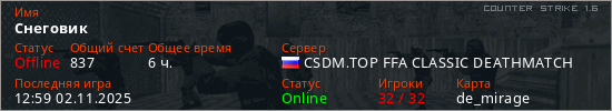 Последний раз был в сети 12:59 02.11.2025 Игрок с таким ником замечен на 8 серверах