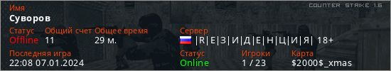 Играет на Counter Strike 1.6 сервере. Страна: РоссияПервый раз замечен 21:17 14.03.2021