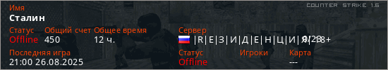 Последний раз был в сети 21:00 26.08.2025 Игрок с таким ником замечен на 41 сервере