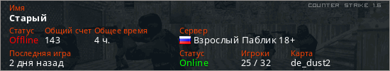 Последний раз был в сети 2 дня назад Игрок с таким ником замечен на 32 серверах