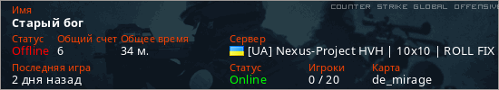 Играет на Counter Strike Global Offensive сервере. Страна: УкраинаПервый раз замечен 18:54 21.03.2026