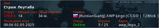Играет на Counter Strike Global Offensive сервере. Страна: РоссияПервый раз замечен 15:44 30.04.2025