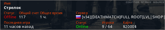 Играет на Counter Strike Source сервере. Страна: РоссияПервый раз замечен 21:31 05.11.2023