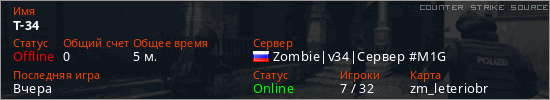 Последний раз был в сети Вчера Игрок с таким ником замечен на 17 серверах