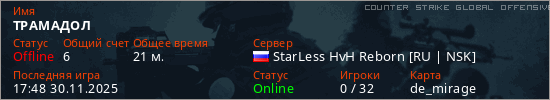Играет на Counter Strike Global Offensive сервере. Страна: РоссияПервый раз замечен 11:40 11.11.2025
