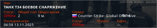 Играет на Counter Strike Source сервере. Страна: РоссияПервый раз замечен 03:12 13.11.2025