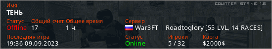 Последний раз был в сети 19:36 09.09.2023 Игрок с таким ником замечен на 14 серверах