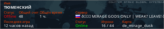 Играет на Counter Strike Global Offensive сервере. Страна: РоссияПервый раз замечен 08:13 08.01.2026