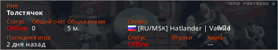 Играет на Team Fortress 2 сервере. Страна: РоссияПервый раз замечен 21:42 18.01.2026