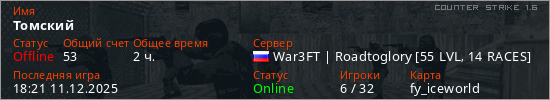 Последний раз был в сети 18:21 11.12.2025 Игрок с таким ником замечен на 9 серверах