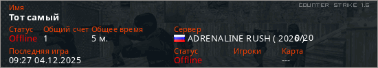 Играет на Counter Strike 1.6 сервере. Страна: РоссияПервый раз замечен 09:10 04.12.2025