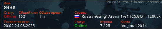 Играет на Counter Strike Global Offensive сервере. Страна: РоссияПервый раз замечен 17:50 05.04.2024