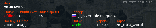 Последний раз был в сети 2 дня назад Игрок с таким ником замечен на 8 серверах