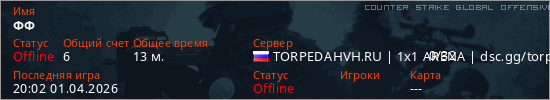 Играет на Counter Strike Global Offensive сервере. Страна: РоссияПервый раз замечен 14:23 01.04.2026
