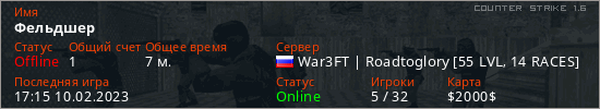 Играет на Counter Strike 1.6 сервере. Страна: РоссияПервый раз замечен 17:11 10.02.2023