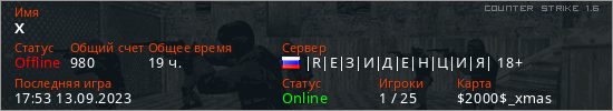 Последний раз был в сети 17:53 13.09.2023 Игрок с таким ником замечен на 18 серверах