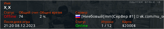 Последний раз был в сети 21:20 08.12.2023 Игрок с таким ником замечен на 7 серверах