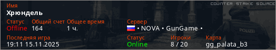 Играет на Counter Strike Source сервере. Страна: РоссияПервый раз замечен 12:30 05.06.2024