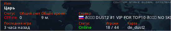 Играет на Counter Strike Global Offensive сервере. Страна: РоссияПервый раз замечен 21:58 11.03.2026