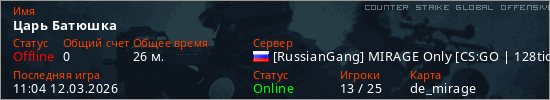 Играет на Counter Strike Global Offensive сервере. Страна: РоссияПервый раз замечен 01:37 07.03.2026