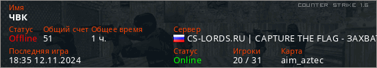 Последний раз был в сети 18:35 12.11.2024 Игрок с таким ником замечен на 20 серверах
