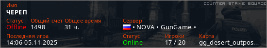 Последний раз был в сети 14:06 05.11.2025 Игрок с таким ником замечен на 9 серверах