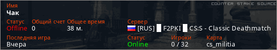 Играет на Counter Strike Source сервере. Страна: РоссияПервый раз замечен 18:50 08.12.2025