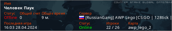 Играет на Counter Strike Global Offensive сервере. Страна: РоссияПервый раз замечен 10:35 06.04.2024
