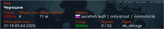 Играет на Counter Strike Global Offensive сервере. Страна: РоссияПервый раз замечен 20:53 05.04.2026