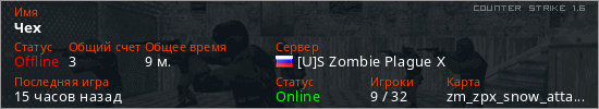 Играет на Counter Strike 1.6 сервере. Страна: РоссияПервый раз замечен 13:21 22.01.2026
