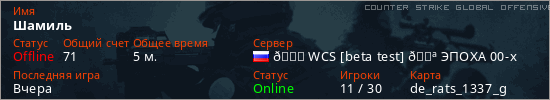 Играет на Counter Strike Global Offensive сервере. Страна: РоссияПервый раз замечен 17:28 06.03.2026