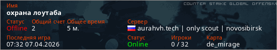 Играет на Counter Strike Global Offensive сервере. Страна: РоссияПервый раз замечен 07:15 07.04.2026