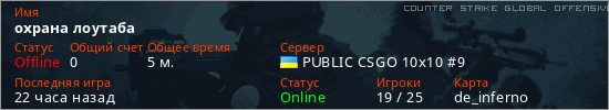 Играет на Counter Strike Global Offensive сервере. Страна: УкраинаПервый раз замечен 13:00 07.03.2026