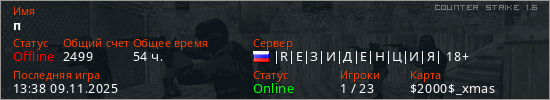 Последний раз был в сети 13:38 09.11.2025 Игрок с таким ником замечен на 29 серверах