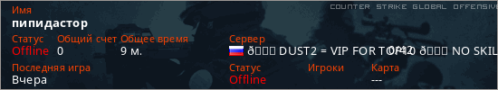 Играет на Counter Strike Global Offensive сервере. Страна: РоссияПервый раз замечен 18:06 14.02.2026