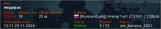 Играет на Counter Strike Global Offensive сервере. Страна: РоссияПервый раз замечен 15:35 29.12.2023