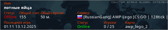 Играет на Counter Strike Global Offensive сервере. Страна: РоссияПервый раз замечен 20:11 15.01.2025